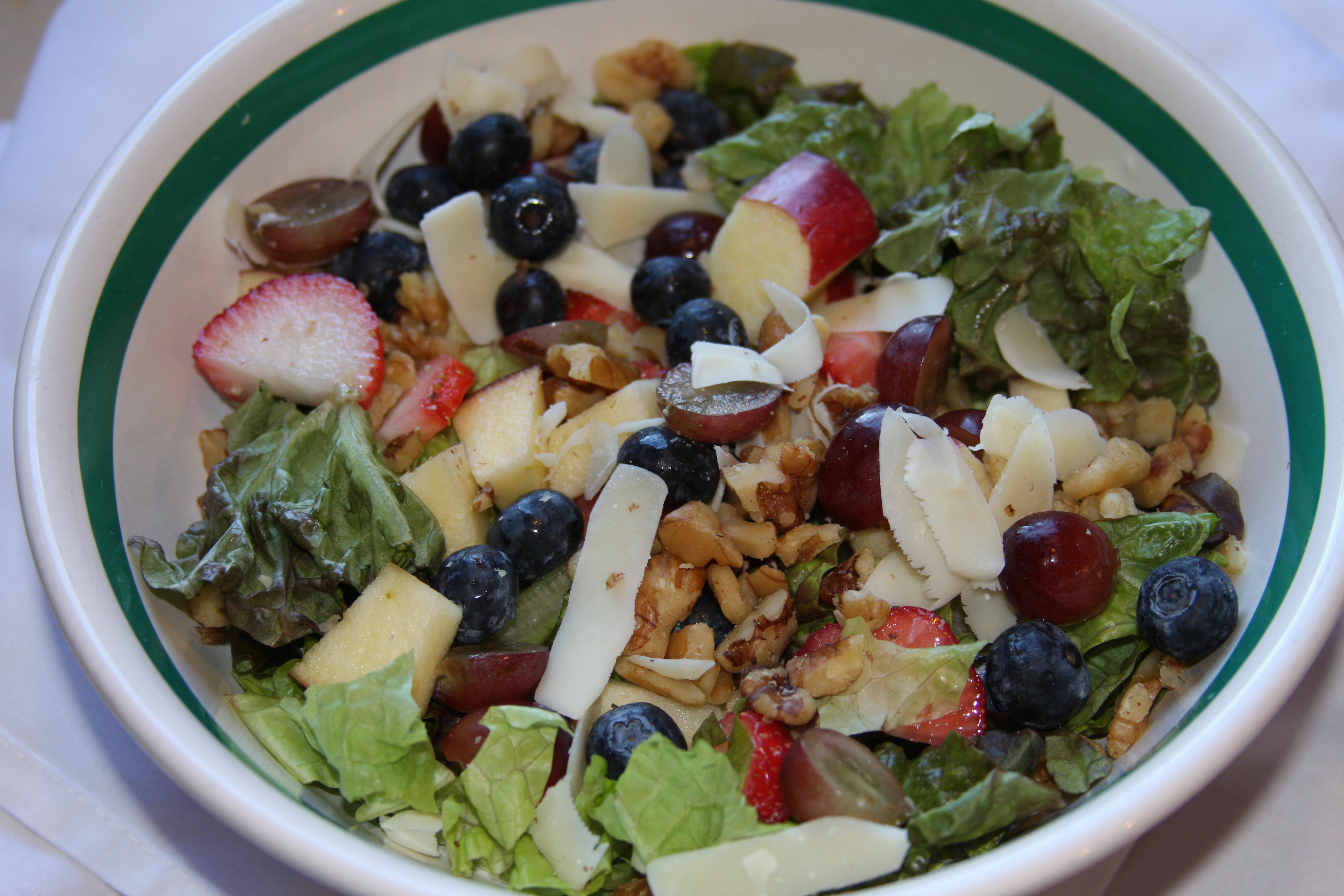 When I was pregnant with my daughter, I ate this salad almost every single day for 9 months. I craved it. It made me happy. It is simple, delicious and good for you! You could add any lettuce or fruit combination you prefer, but I just like the way all of these flavors mix together. I use the Kraft brand Poppy Seed dressing in it because it is really, really good, easy to find and less expensive than some of the others out there. If you haven’t tried it, you should.