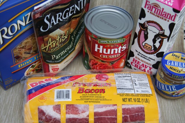 - 12 oz any kind of pasta you like. I normally use egg noodles, but tonight it was bow ties