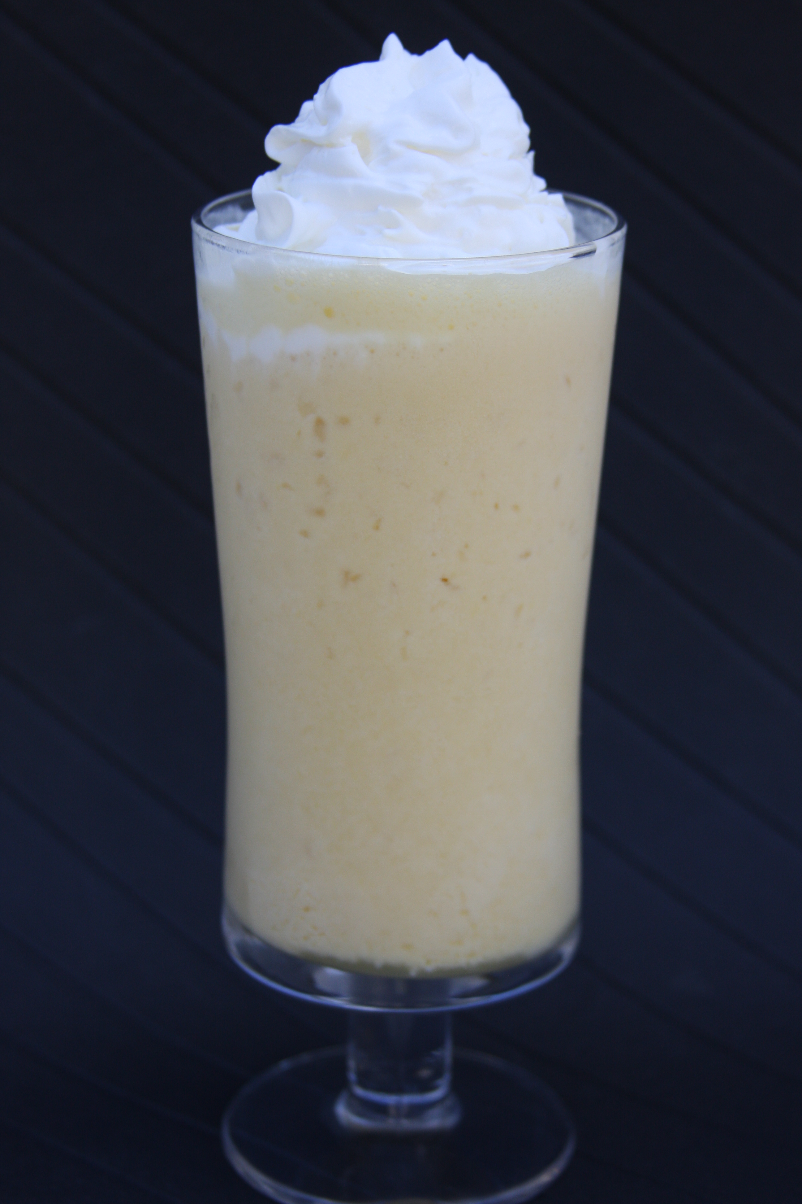 Place all the ingredients in a blender. Blend until you have a smooth creamy texture. Serve immediately. This recipe makes 3 glasses this size.