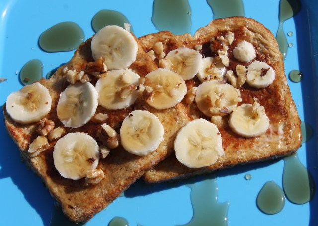 We love French Toast. It is easy to make, tastes good and very versatile. You can use any kind of bread you want and you can top it will all sorts of good things. If you want to live on the wild side you can top it with things are aren’t necessarily good for you, but that taste good!