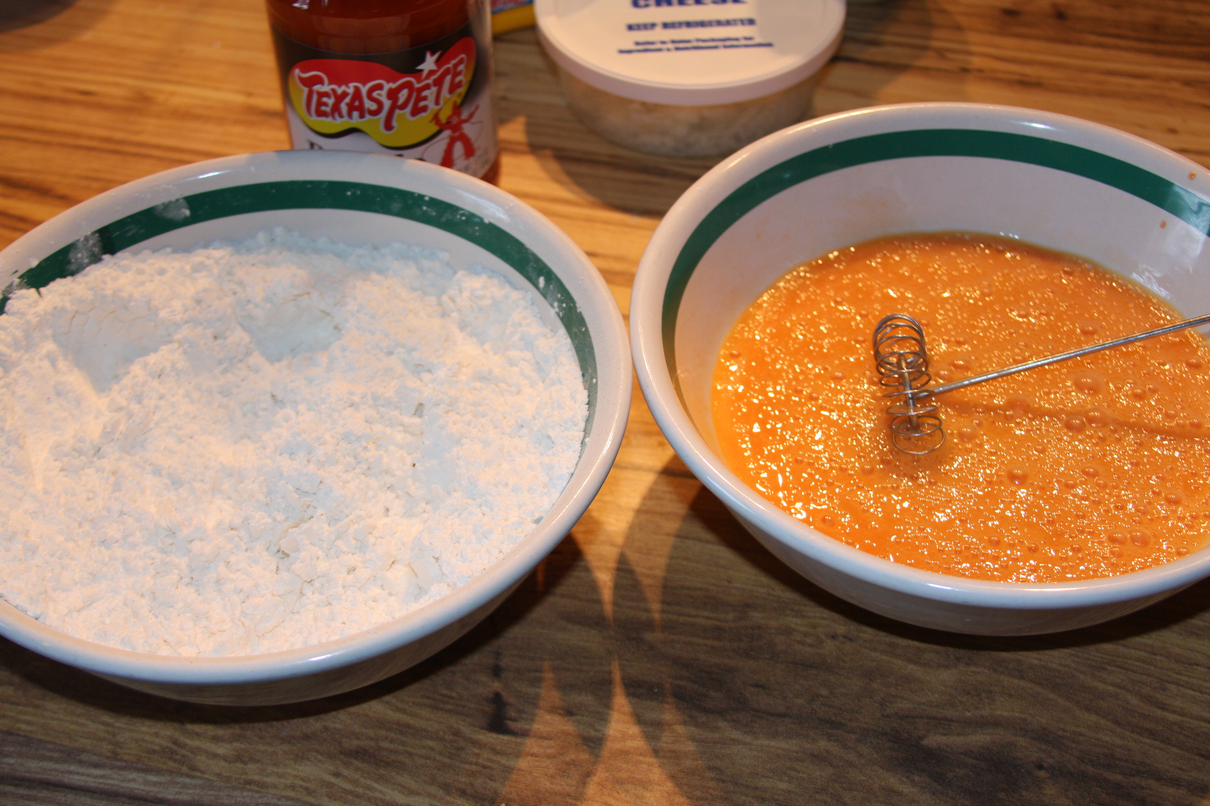 ** To make these Gluten-free you can eliminate the flour altogether and only use the Corn Starch in your batter; or you can use something like Bob’s Red Mill A/P Flour, which can be found in a lot of grocery or health food stores. Whole Foods also carries a variety of gluten free buns, or you can eat the chicken by itself and forget the buns altogether. Texas Pete’s Wing Sauce is also Gluten-free.