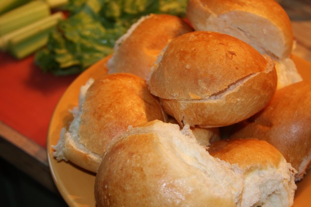 I have always called these tiny sandwiches Buffalo Chicken Sliders, but over the weekend we decided to change the name to Quarterback Chicken Sliders. First, because they are perfect game day food and who doesn’t like a quarterback? Second, because the more I thought about it, I realized you can make these with just about any of your favorite sauces. Buffalo, Barbeque, Sweet and Sour, Lime-Ginger, Tonkatsu (for an Asian flare), just to name a few of the ones I think would be great for these. The following recipe is for the buffalo sauce option, but you would just follow the same directions, substituting the sauce for something different.