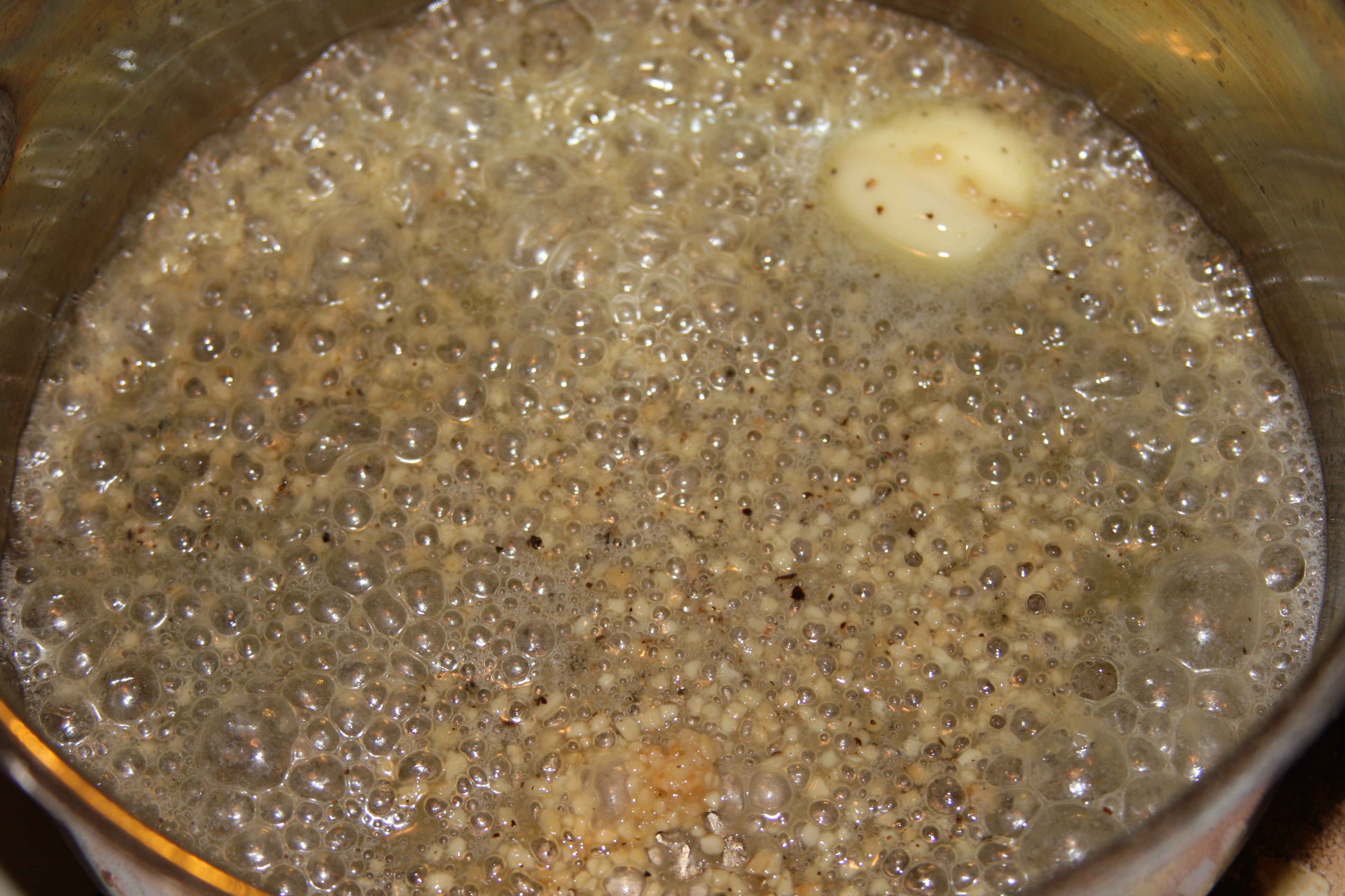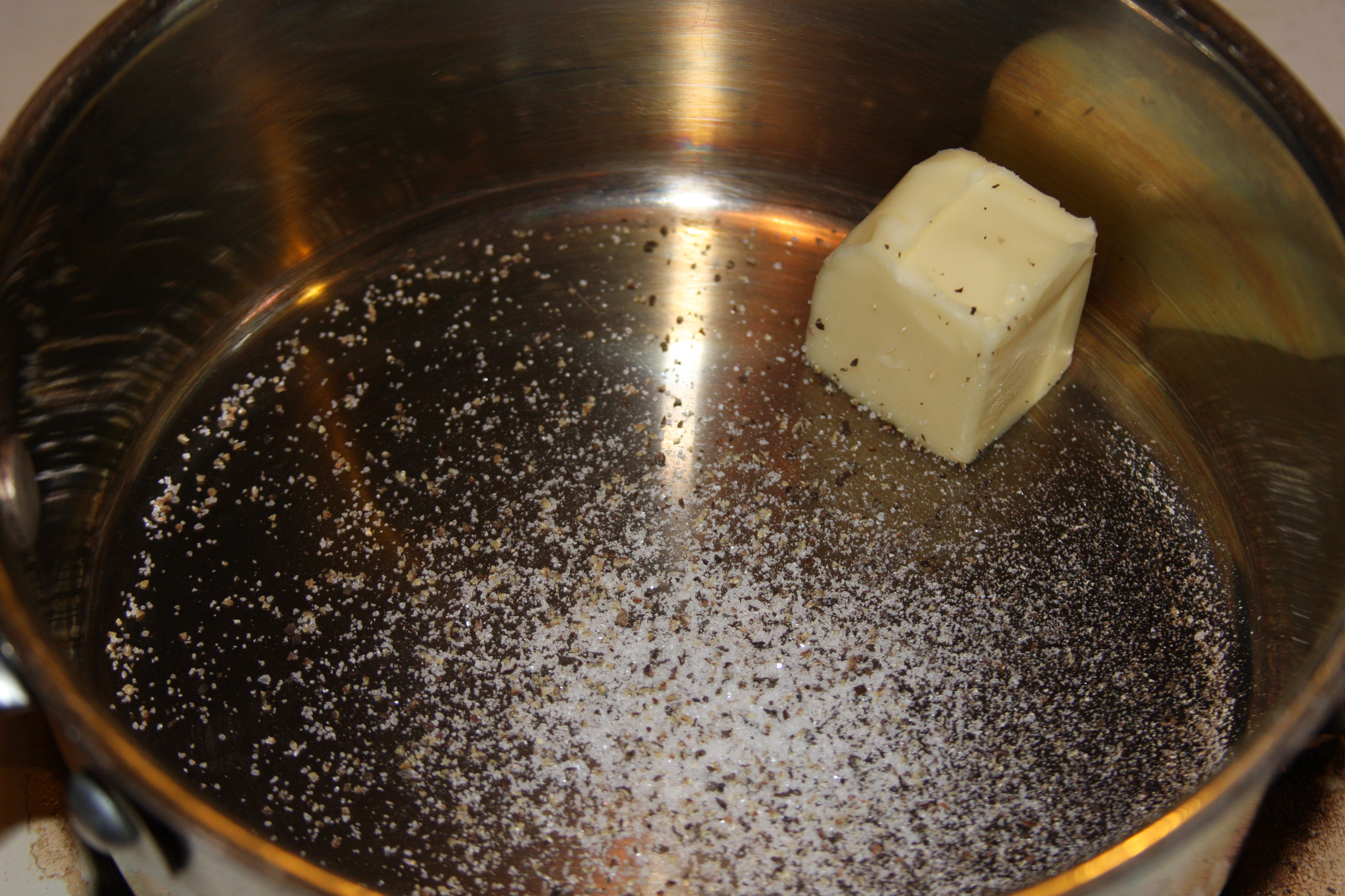 In a saucepan over medium heat, add your salt and pepper and butter.