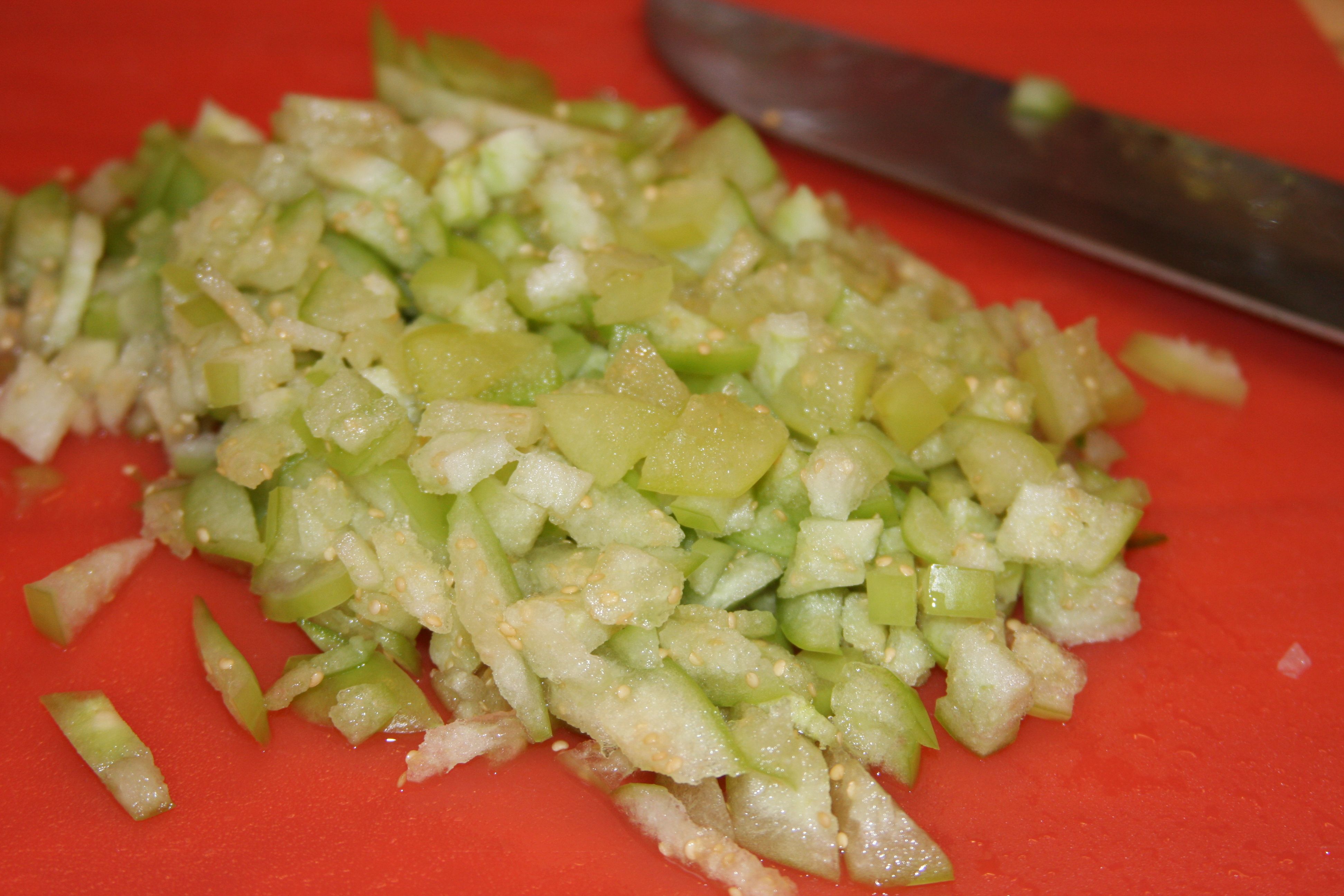 I had never cooked with the tomatillos before making this soup. They have a thin outside covering, sort of like an onion, and they were sticky once I took off that covering. I scrubbed them really good (like I do all my veggies) and then gave them a good chop.