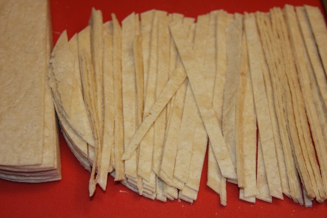 When the soup is just about finished, take out your corn tortillas. I used these: