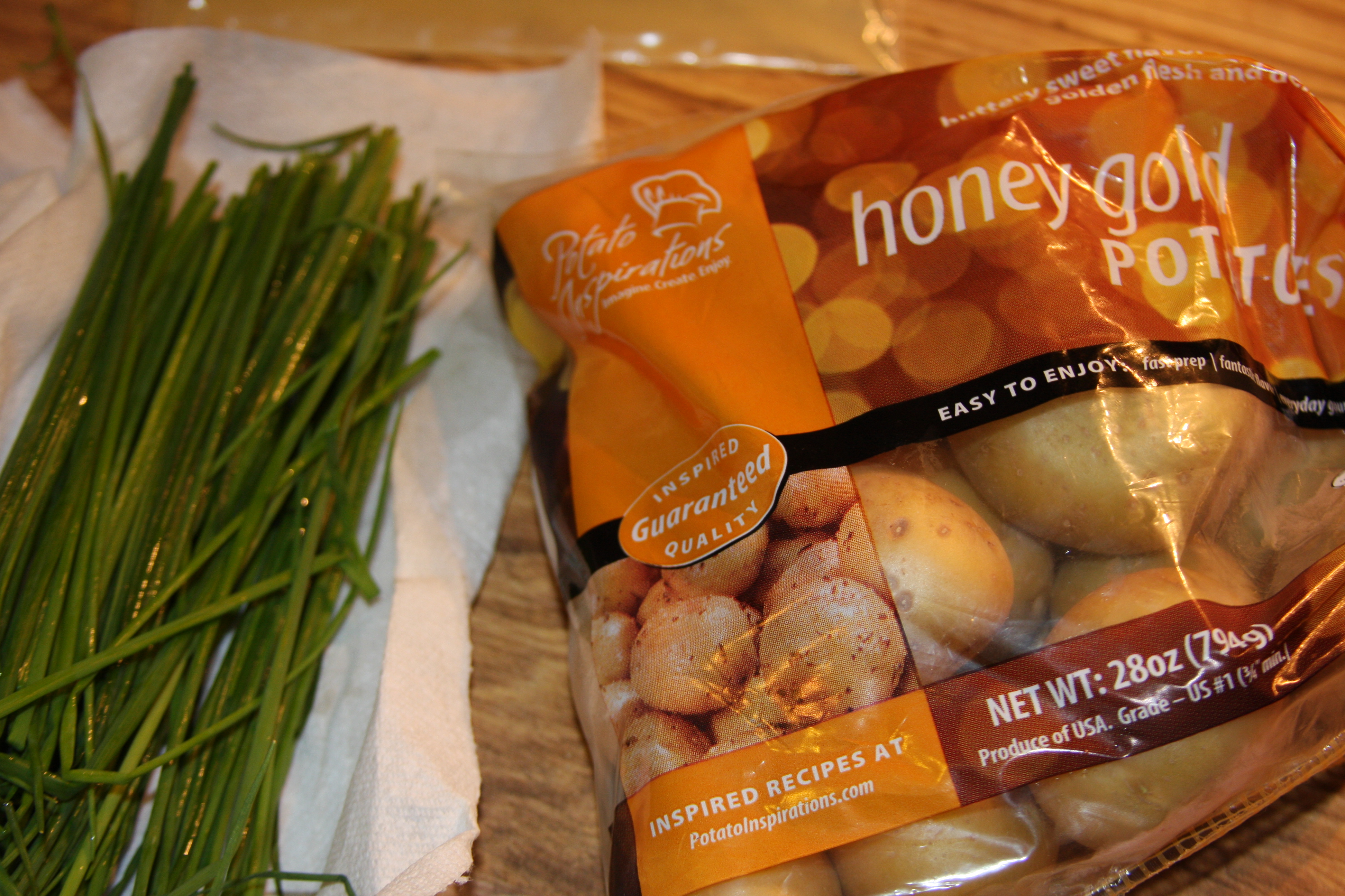 I found these little Honey Gold potatoes at the store awhile back, buy one get one free. They were so cute and tiny, I just had to have them. I hadn’t had a chance to cook them yet, mainly because they were shoved to the back of the refrigerator and I forgot about them. You see, my husband bought me one of those fancy new refrigerators with the double French doors on the top and then two freezer drawers on the bottom. I love it! It’s probably my favorite appliance, well besides the Kitchen Aid. When we first got it he said that he thought there was no way we would ever fill that thing up, because it’s huge. Well, he was wrong. It is always so full that you have to dig around to find things. It’s a little ridiculous, actually.