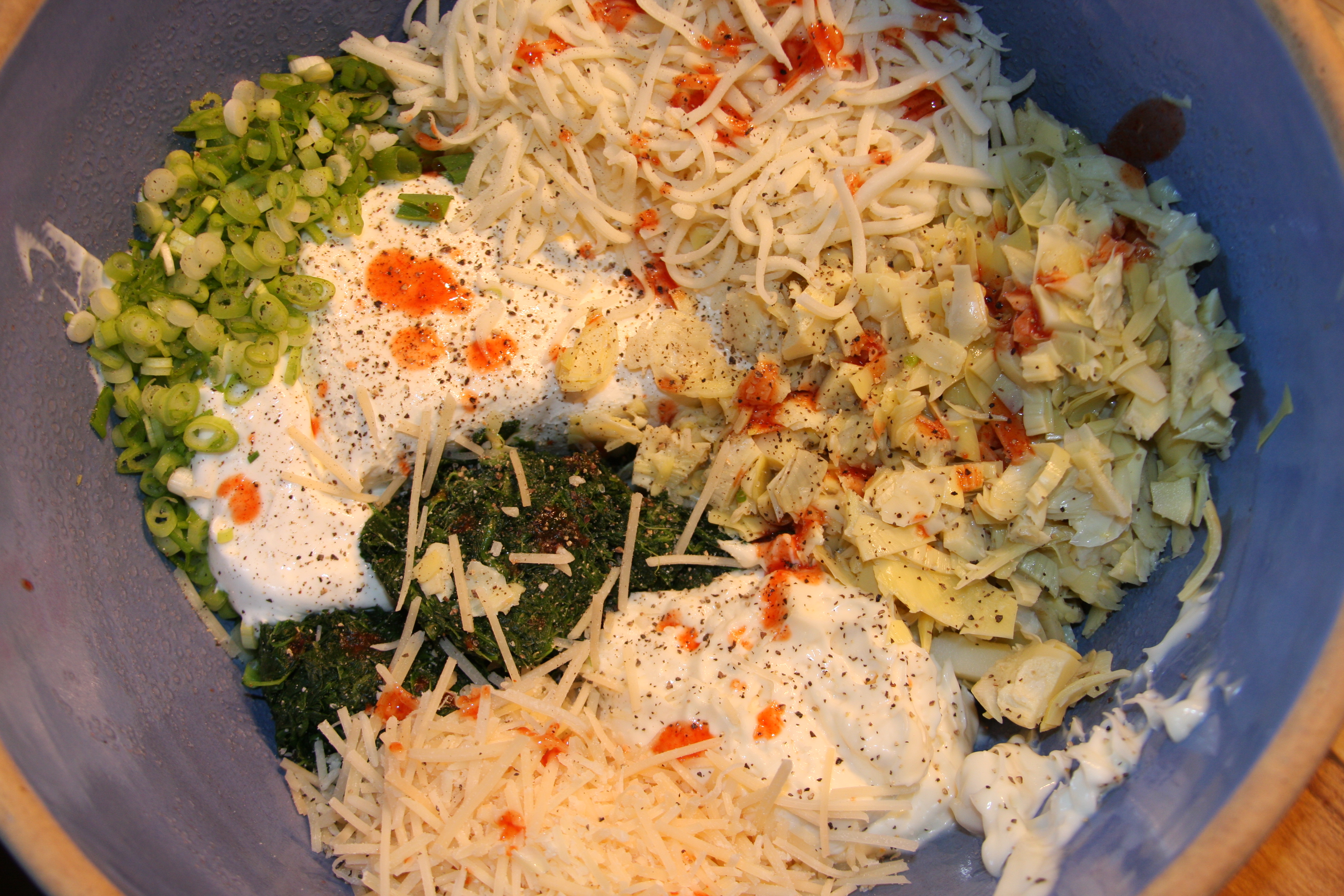 Mix all ingredients together until well combined and transfer to a baking dish. Bake in a 350° oven for about 25-30 minutes, or until top is golden brown and bubbling. Serve hot with tortilla chips, baked pita or bagel chips or crispy toasted bread.