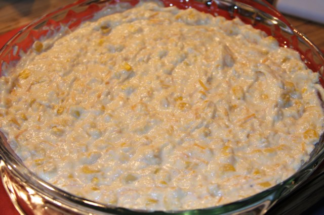 I cooked up some groud beef with ooions (drained), mixed in diced tomatoes, salsa, garkic; basil, 2 boxes of jiffy corn muffin mix, with some milk and 2 eggs, plus the corn and sour cream and the cheese on top, After it was all done, I mixed taco seasoning , with sout cream, put some on top with LaVictoria Salsa Brava (Hot) and it was Totally AWESOME!!