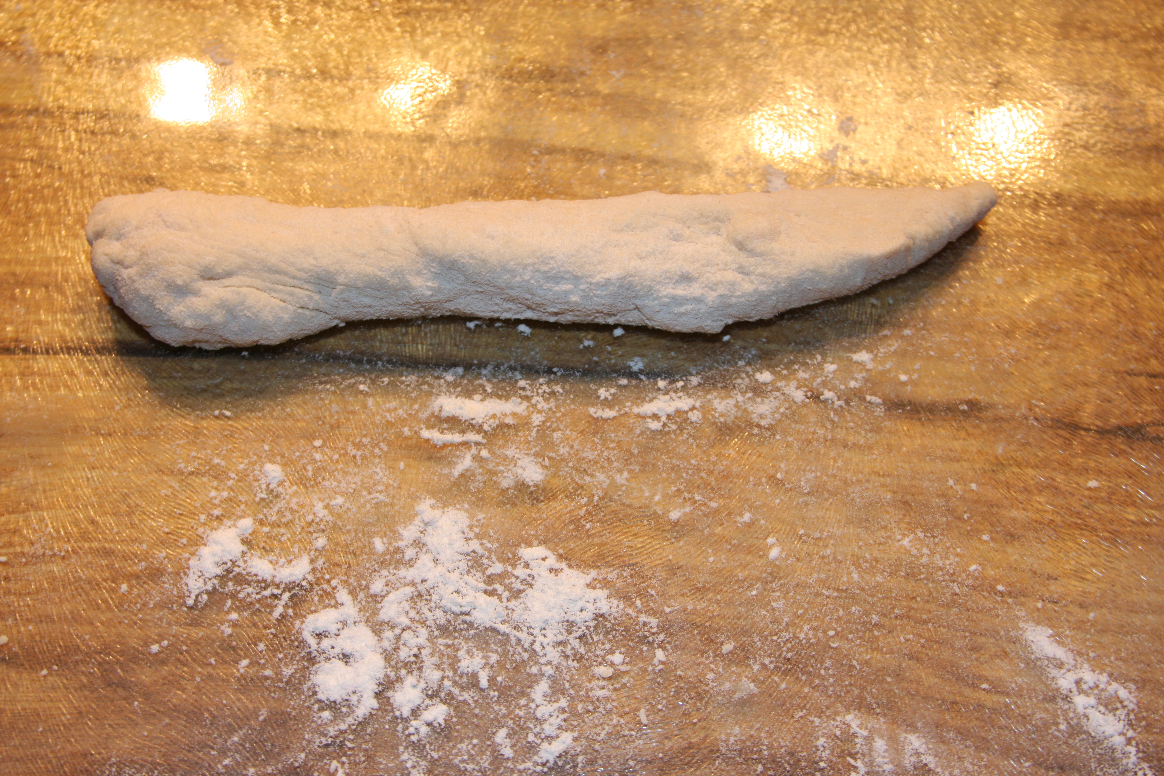 The I put a small amount of flour on my hands and rolled out each piece into a log shape.