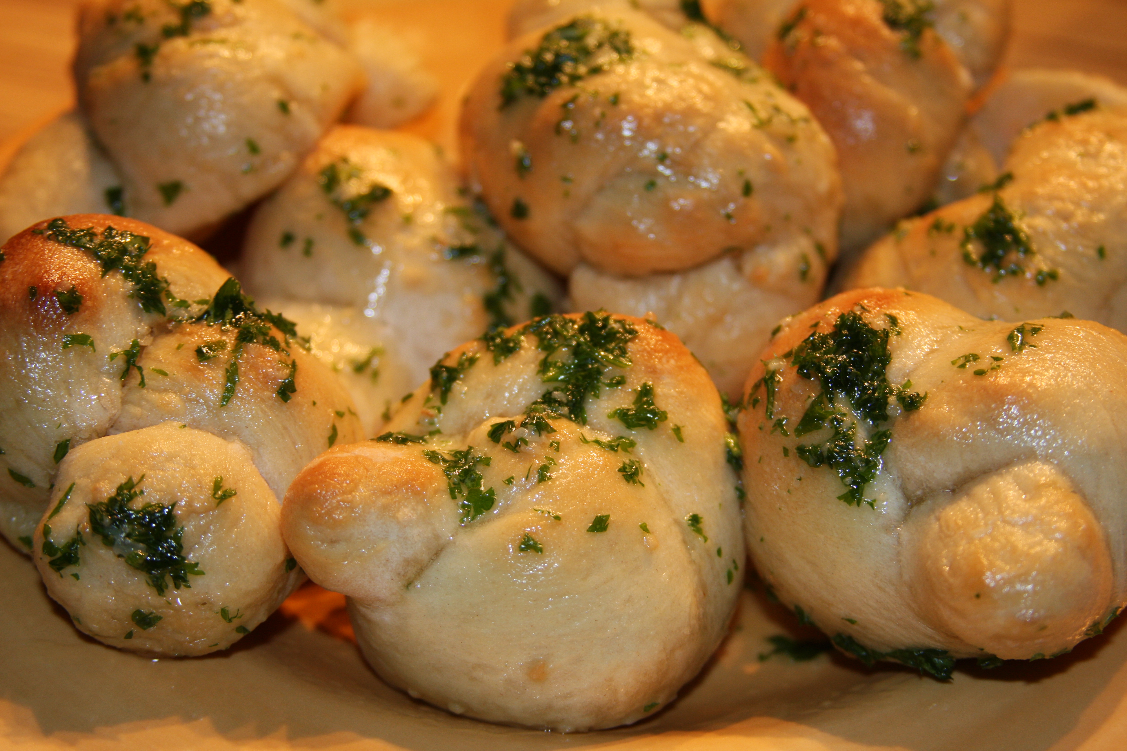 One thing I love about those little Italian -hole in the wall- pizza places are how good their garlic knots usually are. You know the ones, quiet little restaurants, often in a strip mall, with the little cheap red candle holders on the tables and white paper table cloths. Garlic knots served hot and dripping with buttery garlic. Y.U.M.