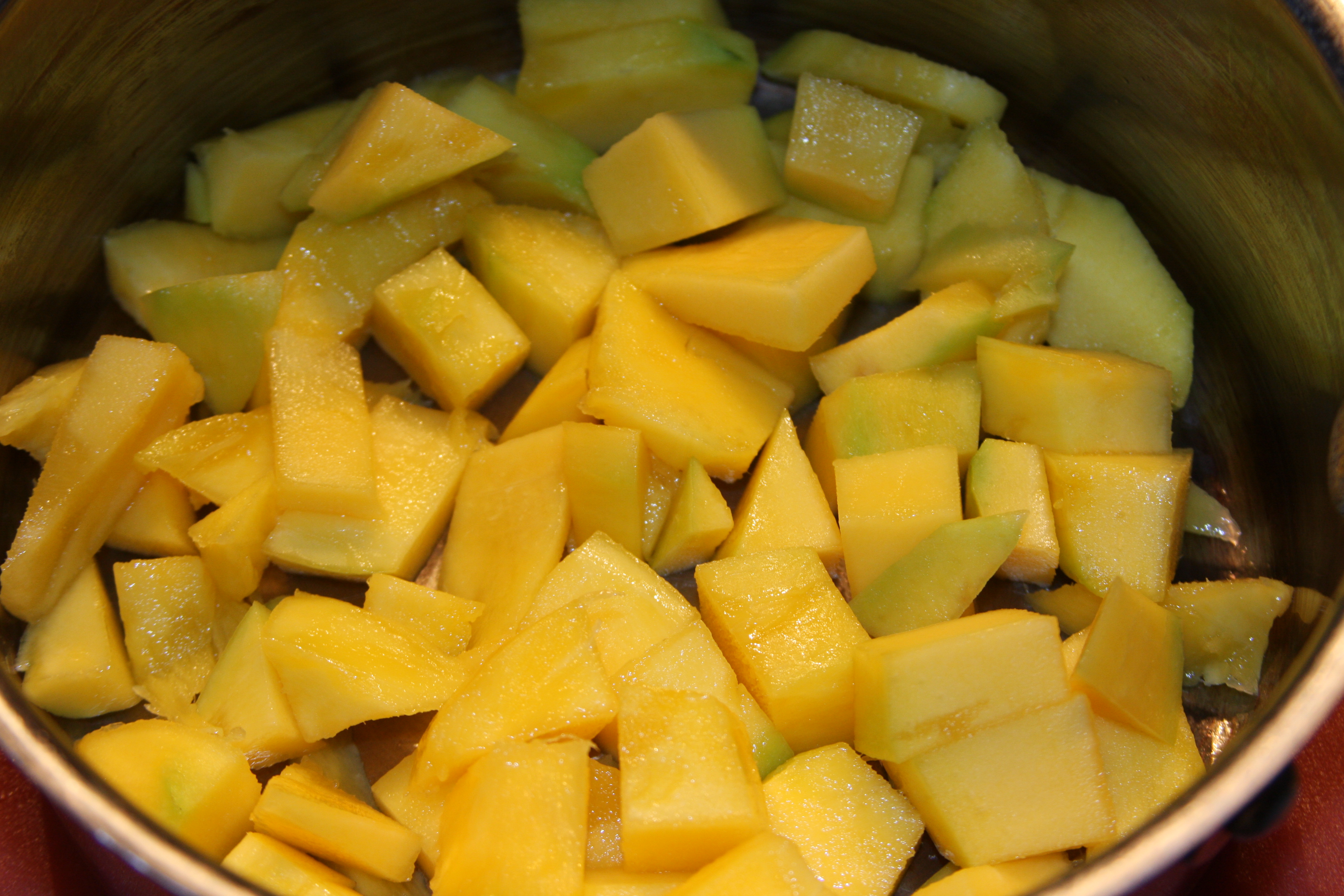 Peel and chop up the mango and place in a medium saucepan.