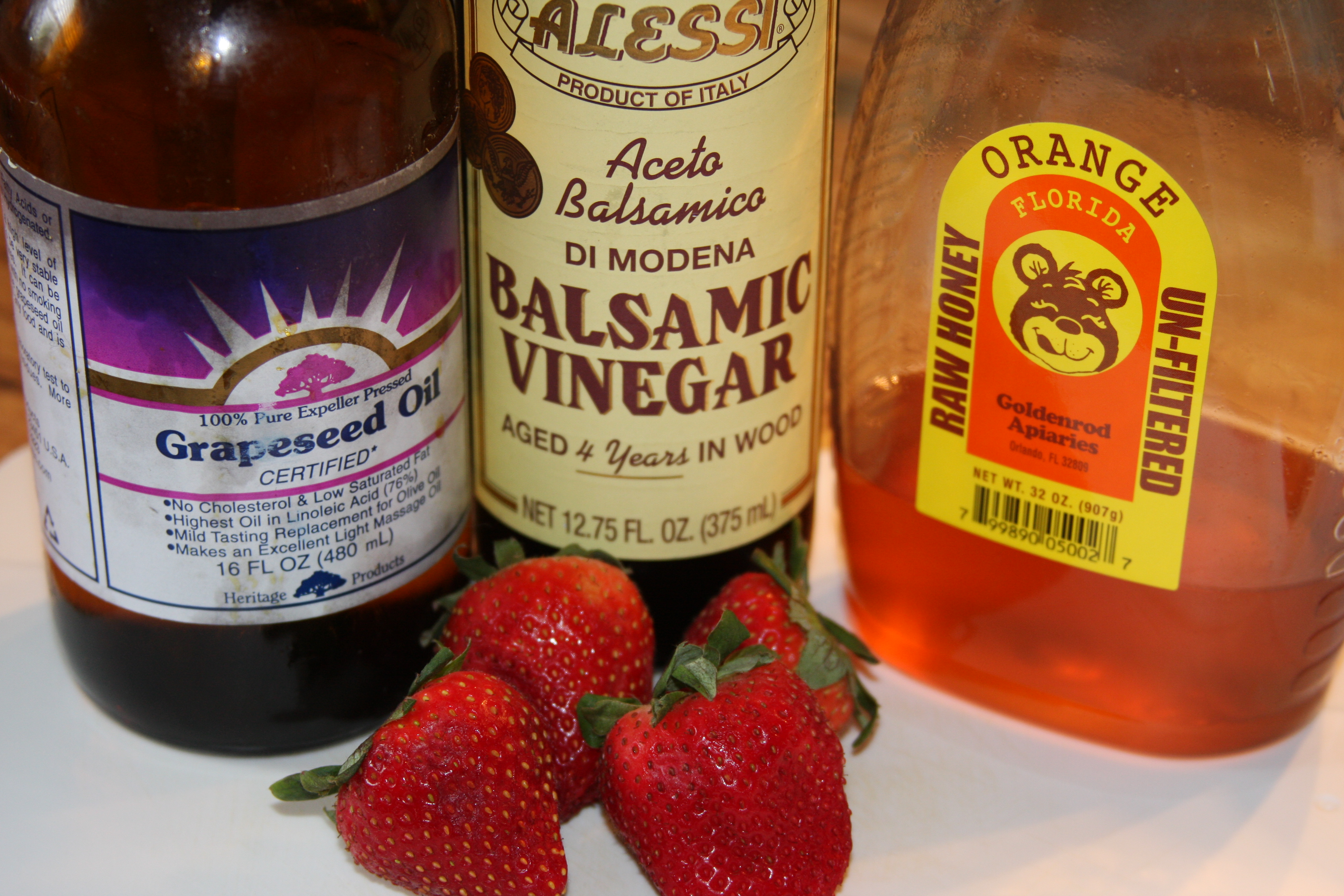 I used grapeseed oil in this because it is good for you and it doesn’t have much flavor, so I knew that it wouldn’t overpower the balsamic and strawberry flavor. You could easily use olive oil if you wanted to.