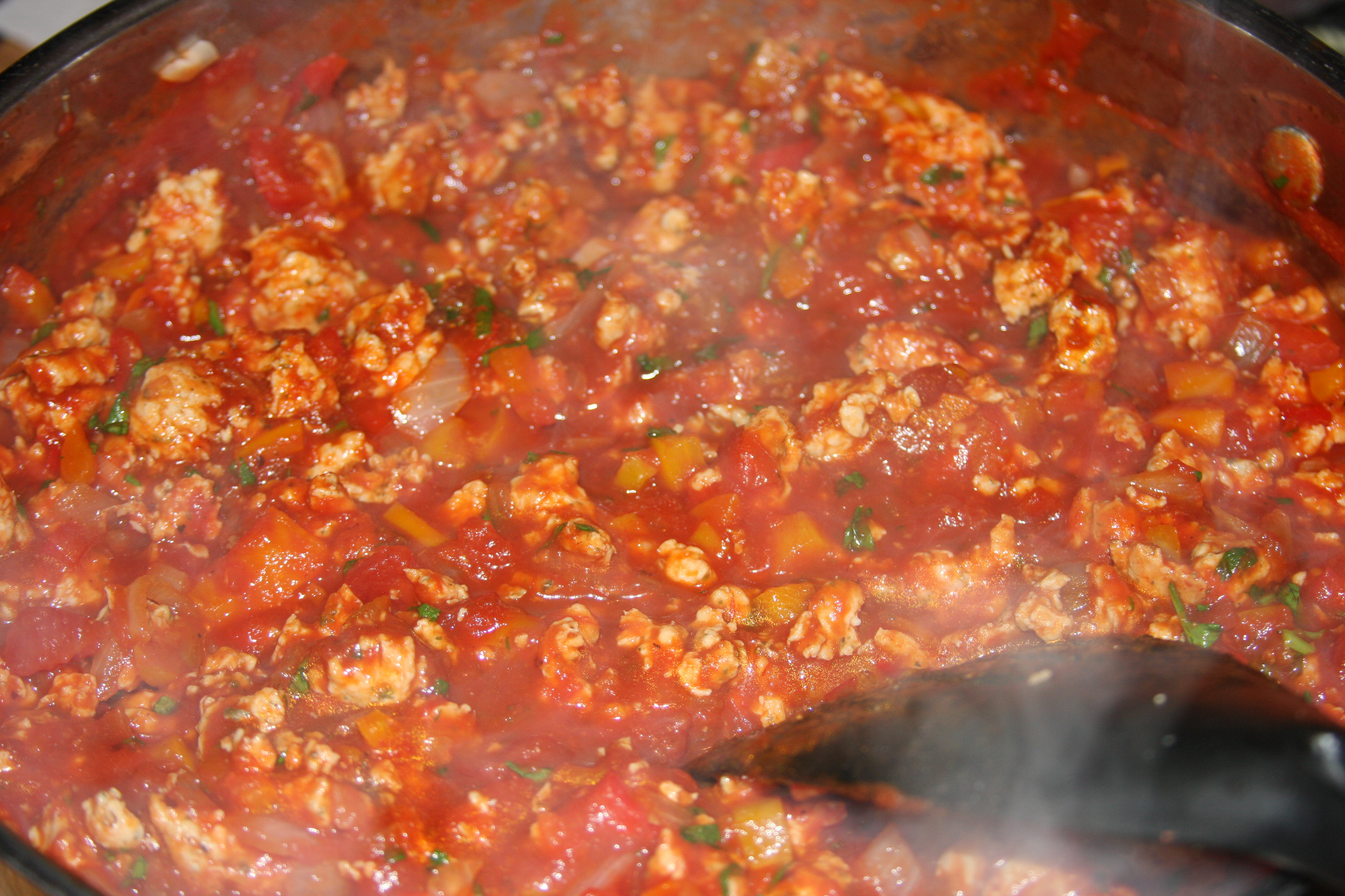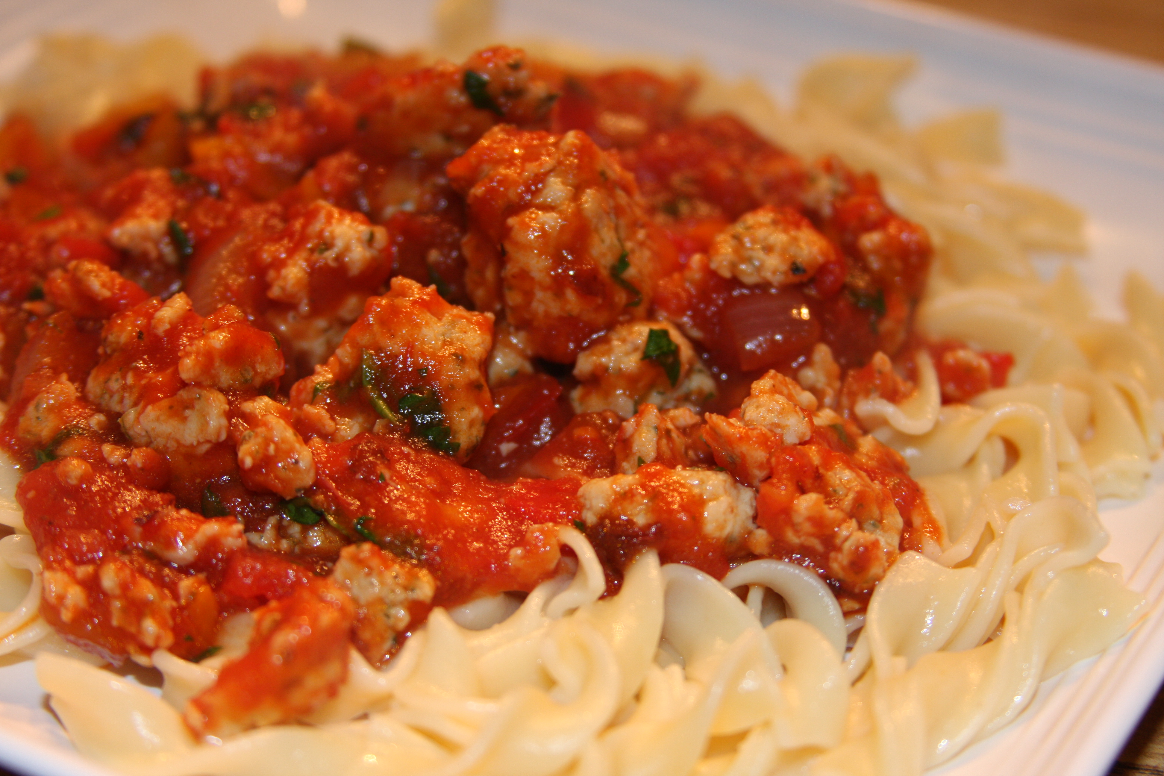 Cook pasta according to package directions. Remove chicken sausage from casings and crumble into a large skillet.