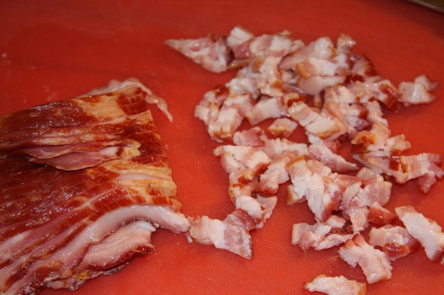 Chop up your bacon. I used a half a pound. I was trying to make sure that there was more bacon flavor than sprouts.