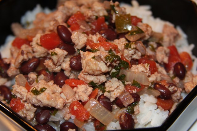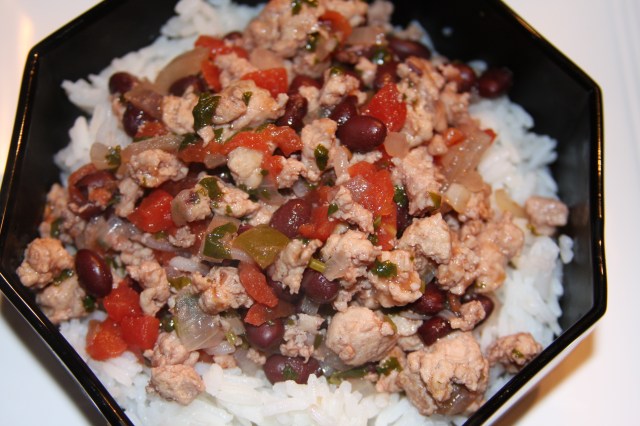 A couple of months ago I posted this recipe for Tequila Lime Chicken Sausage with Black Beans that I made up from this awesome chicken sausage (with the same name) I picked up at Whole Foods. This dish was so amazing. However, I have been unable to find that sausage again at WF, and I have been unsuccessful even finding plain chicken sausage at any of the grocery stores I shop in lately. I have really been craving this meal again, so I decided yesterday to just pick up a package of organic ground chicken and go from there.