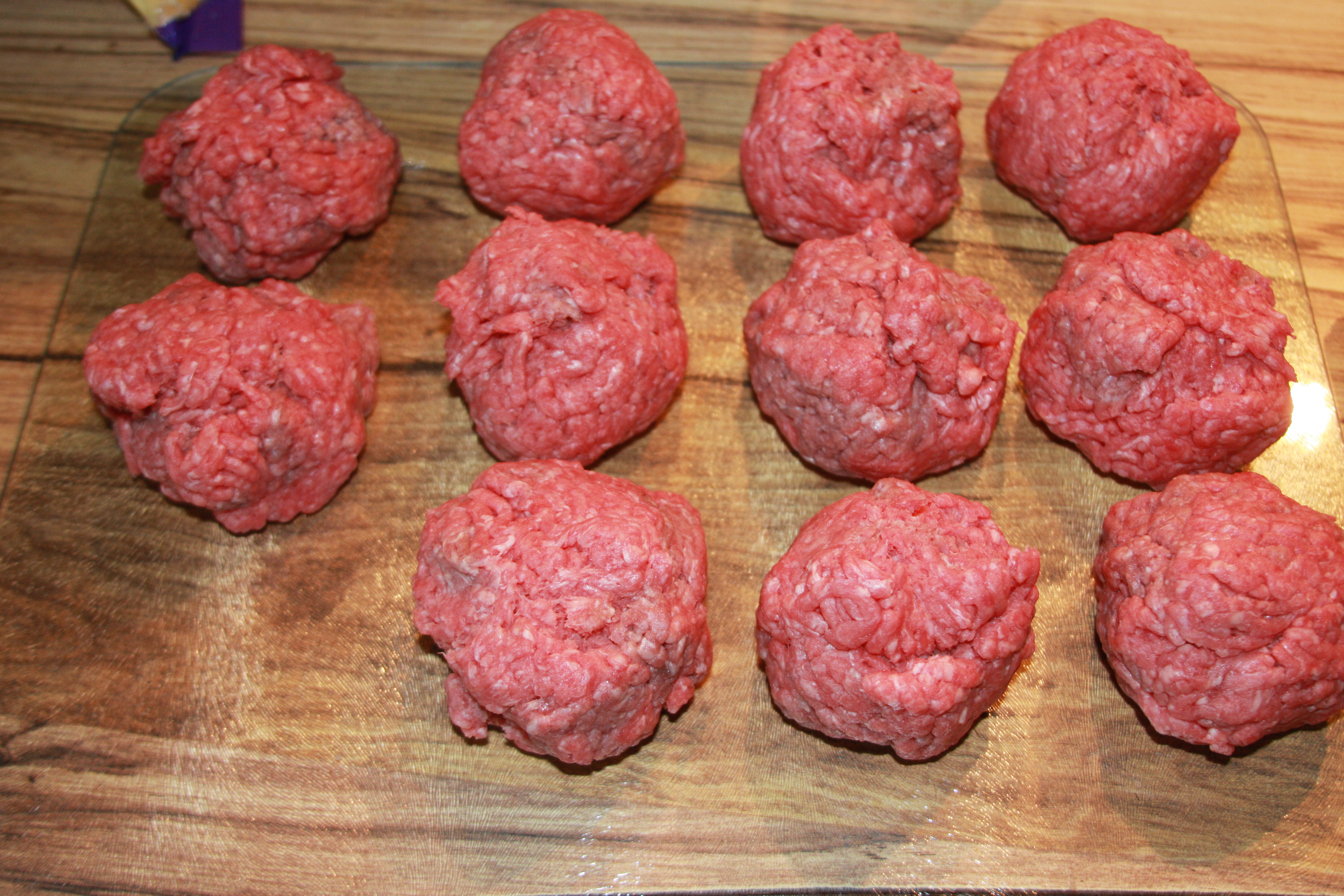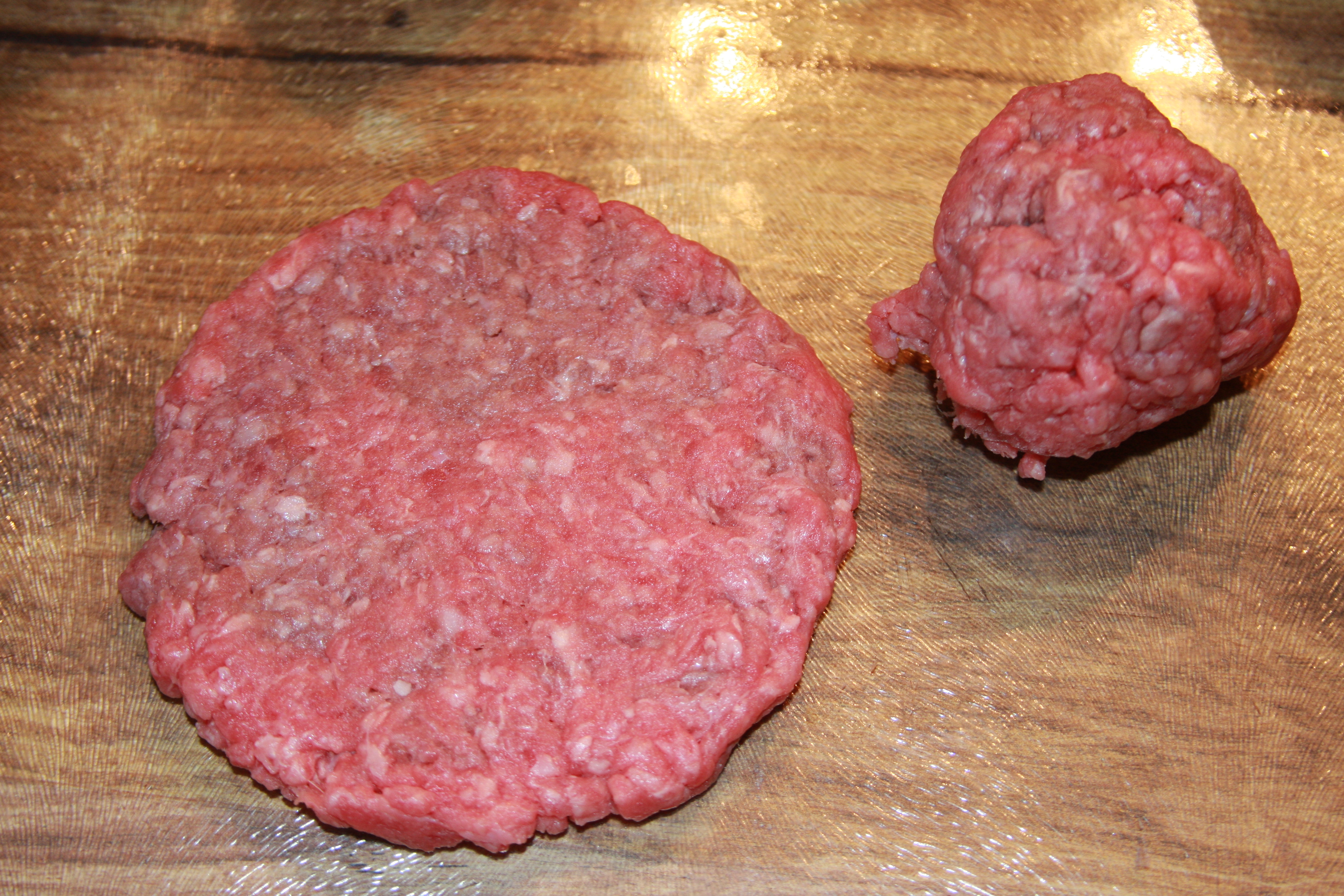 I have a kitchen scale and I use it to measure out the ground beef into roughly 1/4 pound sections. This makes for a nice size burger and enough meat to make a patty big enough for all the stuffing. If you don’t have a scale, just try to eyeball it so that you get each section about the same size. When I make these, I usually buy a large amount of beef and make quite a few at once and then freeze what I don’t need for that one night’s dinner.