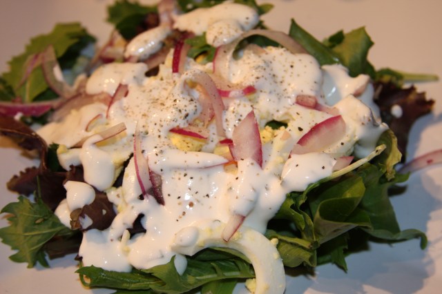 - 1/2 of a sweet onion, sliced in thin rings