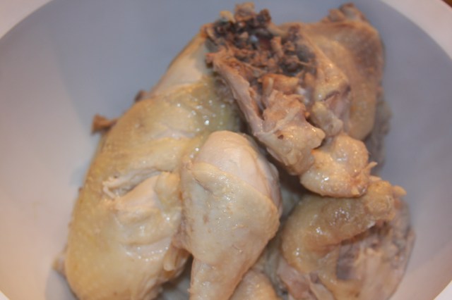 This is the only picture I had left of the turkey after I had starting cutting it up, but you can see the bits of herbs baked into the meat.
